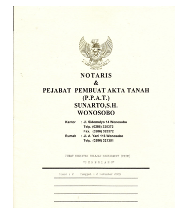 Akta Pendirian PKBM / Akta Notaris No 2 (02/11/2009) Notaris Sunarto SH. M. Hum