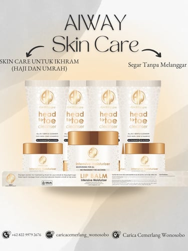 Diformulasikan khusus untuk memberikan kelembapan optimal tanpa rasa lengket, AIWAY Skin Care menjadi solusi tepat bagi Anda yang menginginkan kulit bersih, sehat, dan terawat, bahkan untuk kebutuhan ibadah seperti umrah dan haji.